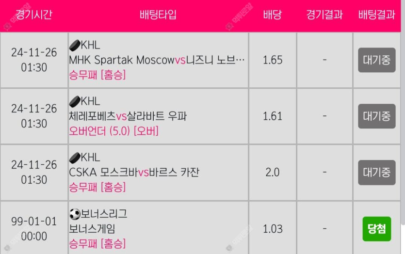 베팅내역 이벤트)모델 돌발 이벤트 받고 새벽경기 베팅 작성자 정보 성공하자 작성 작성일 2024.11.25 23:10 컨텐츠 정보 205 조회 3 댓글 목록 본문 오늘도 어김없이 러시아하키,,,새벽경기도 화이팅입니다!!! 0 추천 신고 관련자료 댓글 3 나룻배님의 댓글 나룻배 작성일 2024.11.25 23:20 건승하새요 신고 건승하새요 제이월드님의 댓글 제이월드 작성일 2024.11.25 23:30 적중하시기 바랍니다. 신고 적중하시기 바랍니다. 망고마미님의 댓글 망고마미 작성일 2024.11.26 14:50 건승하세요ㅠㅠ 신고 건승하세요ㅠㅠ 로그인한 회원만 댓글 등록이 가능합니다. 목록