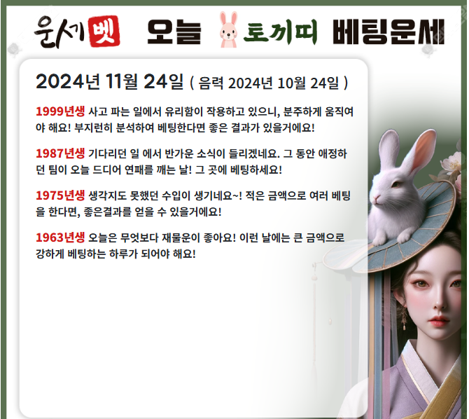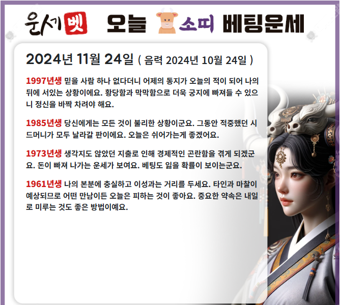 토요일은 토토 즐기는날!!! 작성자 정보 운세맨 작성 작성일 2024.11.23 23:35 컨텐츠 정보 207 조회 3 댓글 목록 본문 불토에 조합잘맞춰서 건승즐기자! 0 추천 신고 관련자료 댓글 3 머니머니님의 댓글 머니머니 작성일 2024.11.23 23:58 토요일은 토토 신고 토요일은 토토 나룻배님의 댓글 나룻배 작성일 2024.11.24 04:54 건승하새요 신고 건승하새요 망고마미님의 댓글 망고마미 작성일 2024.11.24 14:31 오늘은 일요일 신고 오늘은 일요일 로그인한 회원만 댓글 등록이 가능합니다. 목록