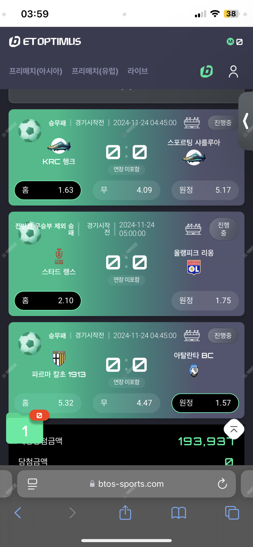 베팅공유 이벤트!! 작성자 정보 세베잉 작성 작성일 2024.11.24 04:00 컨텐츠 정보 201 조회 4 댓글 목록 본문 술먹고 늦게 들어와서 재밌는 경기들 다 못갔네요ㅠㅠ 이제서야 늦게라도 남은 경기들 배팅해서 술값 벌어보겠슴다 ㅎㅎ 0 추천 신고 관련자료 댓글 4 돈키호테님의 댓글 돈키호테 작성일 2024.11.24 04:07 건승하세요 ㅎ 신고 건승하세요 ㅎ 나룻배님의 댓글 나룻배 작성일 2024.11.24 04:49 건승하새요 신고 건승하새요 어어앙님의 댓글 어어앙 작성일 2024.11.24 06:07 리옹 승 보이네요 전 신고 리옹 승 보이네요 전 망고마미님의 댓글 망고마미 작성일 2024.11.24 14:34 건승하세용ㅎ 신고 건승하세용ㅎ 로그인한 회원만 댓글 등록이 가능합니다. 목록
