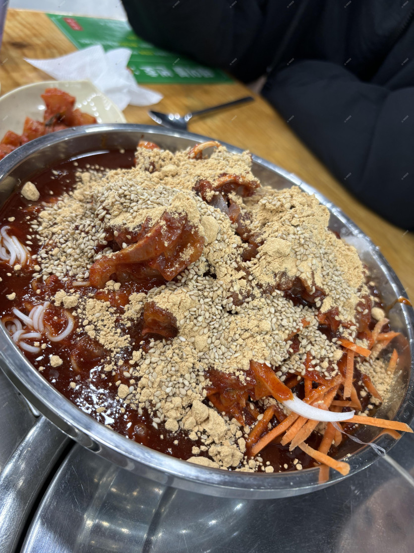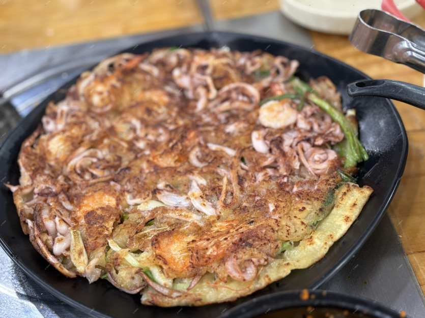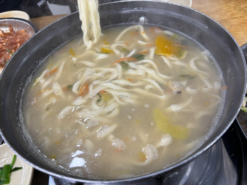 물회, 파전, 칼국수, 알밥 시켜놓고