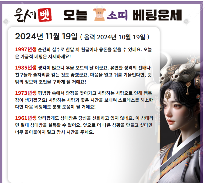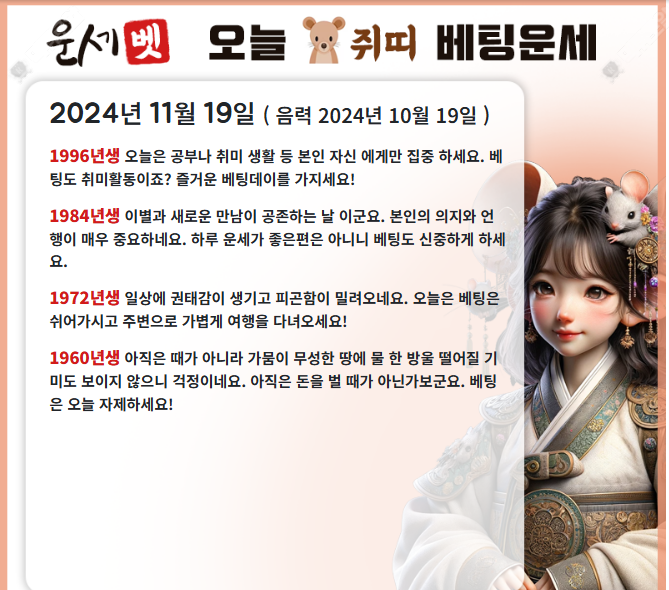 한주 잘 시작들 하셨습니까행님들 작성자 정보 운세맨 작성 작성일 2024.11.18 18:24 컨텐츠 정보 257 조회 2 댓글 목록 본문 운세보고 조합한번 시원하게 맞추시죠 0 추천 신고 관련자료 댓글 2 크리스티아누님의 댓글 크리스티아누 작성일 2024.11.18 18:54 감사합시다 잘봤어요! 신고 감사합시다 잘봤어요! 망고마미님의 댓글 망고마미 작성일 2024.11.19 06:51 감사합니다~\~~ 신고 감사합니다~\~~ 로그인한 회원만 댓글 등록이 가능합니다. 목록