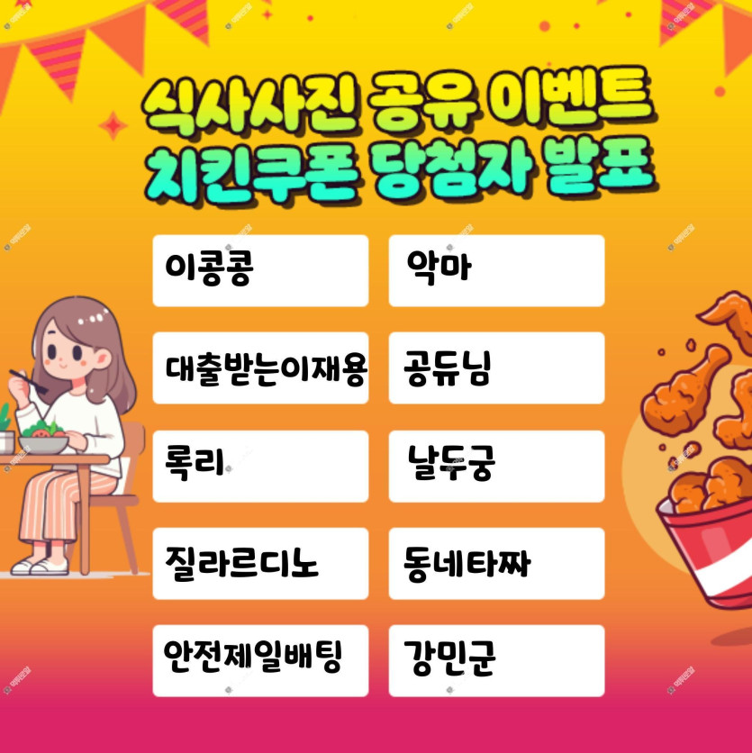 ★ 11월11일~11월17일 식사사진 공유 당첨자 발표 ★