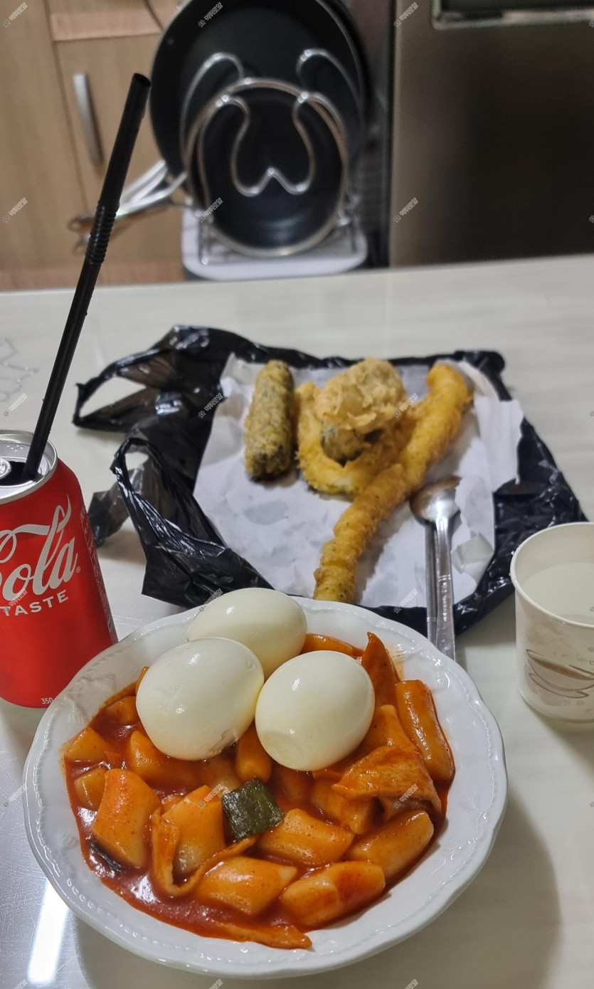 분식 떡볶이 계란 튀김 코카콜라 냠냠~