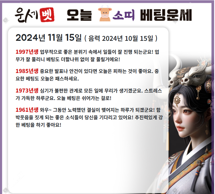 한국승 기운받고 프랑스 승오버 가즈아~~ 작성자 정보 운세맨 작성 작성일 2024.11.15 00:39 컨텐츠 정보 342 조회 3 댓글 목록 본문 운세보고 조합 맞춰봅시다!!! 0 추천 신고 관련자료 댓글 3 요미치님의 댓글 요미치 작성일 2024.11.15 03:05 건승하세요 신고 건승하세요 망고마미님의 댓글 망고마미 작성일 2024.11.15 04:37 가즈앙 신고 가즈앙 푸라닭님의 댓글 푸라닭 작성일 2024.11.16 10:46 건승하세요 신고 건승하세요 로그인한 회원만 댓글 등록이 가능합니다. 목록