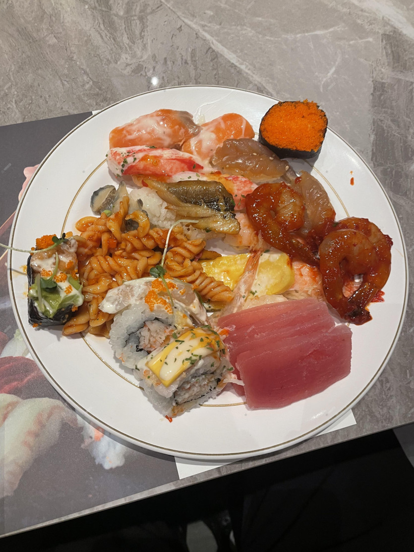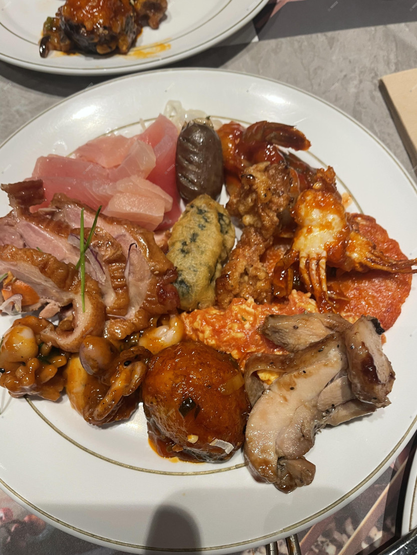 안녕하세요! 오늘의 식사는 점심!! 무한리필집가서 회+각종음식등등 먹었구요!!