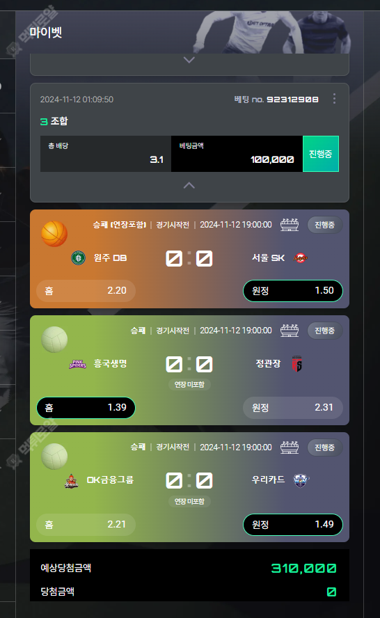 배팅공유 작성자 정보 프강사 작성 작성일 2024.11.12 02:43 컨텐츠 정보 245 조회 3 댓글 목록 본문 배당 변하기전에 미리 배팅합니당 0 추천 신고 관련자료 댓글 3 다수표님의 댓글 다수표 작성일 2024.11.12 07:09 꼭 적중하시길!! 신고 꼭 적중하시길!! 어어앙님의 댓글 어어앙 작성일 2024.11.12 20:27 건승이요 신고 건승이요 망고마미님의 댓글 망고마미 작성일 2024.11.13 08:48 건승하세요~~~~ 신고 건승하세요~~~~ 로그인한 회원만 댓글 등록이 가능합니다. 목록