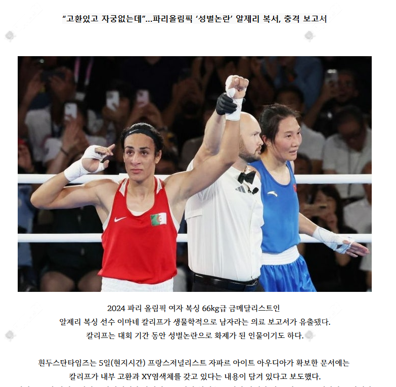 올림픽 금메달 여선수..남자로 밝혀지다.. 작성자 정보 악마 작성 작성일 2024.11.05 12:08 컨텐츠 정보 218 조회 4 댓글 목록 본문 허허... 0 추천 신고 관련자료 댓글 4 쿠쿠케케님의 댓글 쿠쿠케케 작성일 2024.11.05 12:08 누가봐도......얼굴이...... 크억 신고 누가봐도......얼굴이...... 크억 쉿낄낄님의 댓글 쉿낄낄 작성일 2024.11.05 13:52 개싫어 진심 극혐이다 신고 개싫어 진심 극혐이다 지텽님의 댓글 지텽 작성일 2024.11.05 15:11 우욱.. 신고 우욱.. 망고마미님의 댓글 망고마미 작성일 2024.11.06 08:06 아... 신고 아... 로그인한 회원만 댓글 등록이 가능합니다. 목록