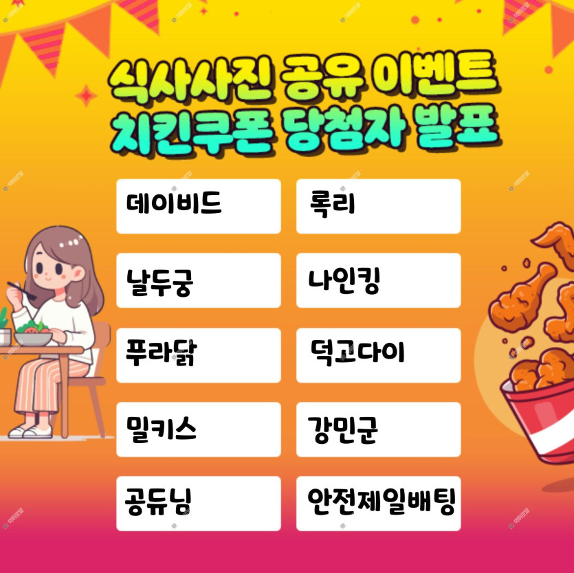 ★ 10월28일~11월3일 식사사진 공유 당첨자 발표 ★