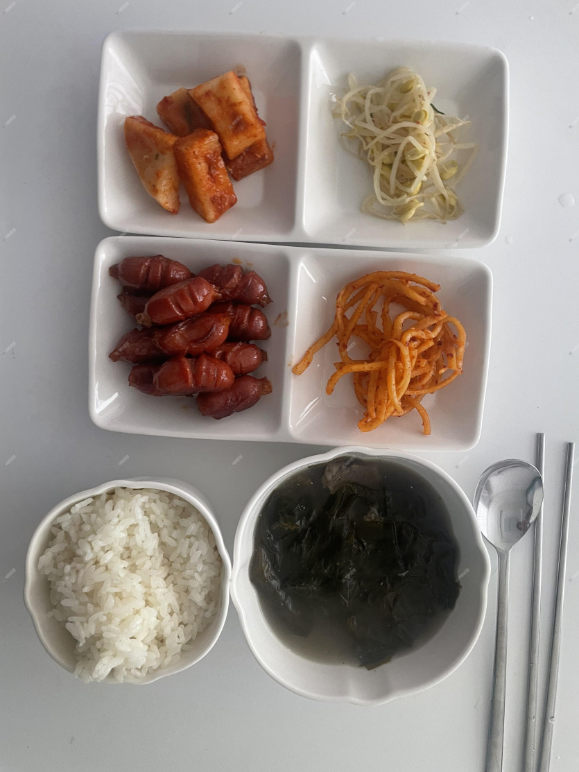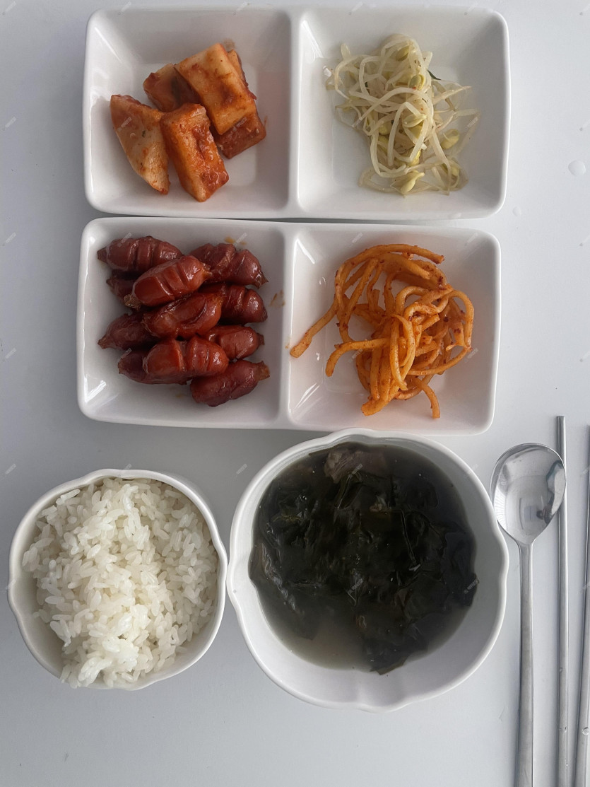 식사이벤) 어제저녁 목살+오늘아침 소시지+미역국