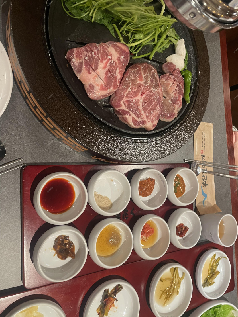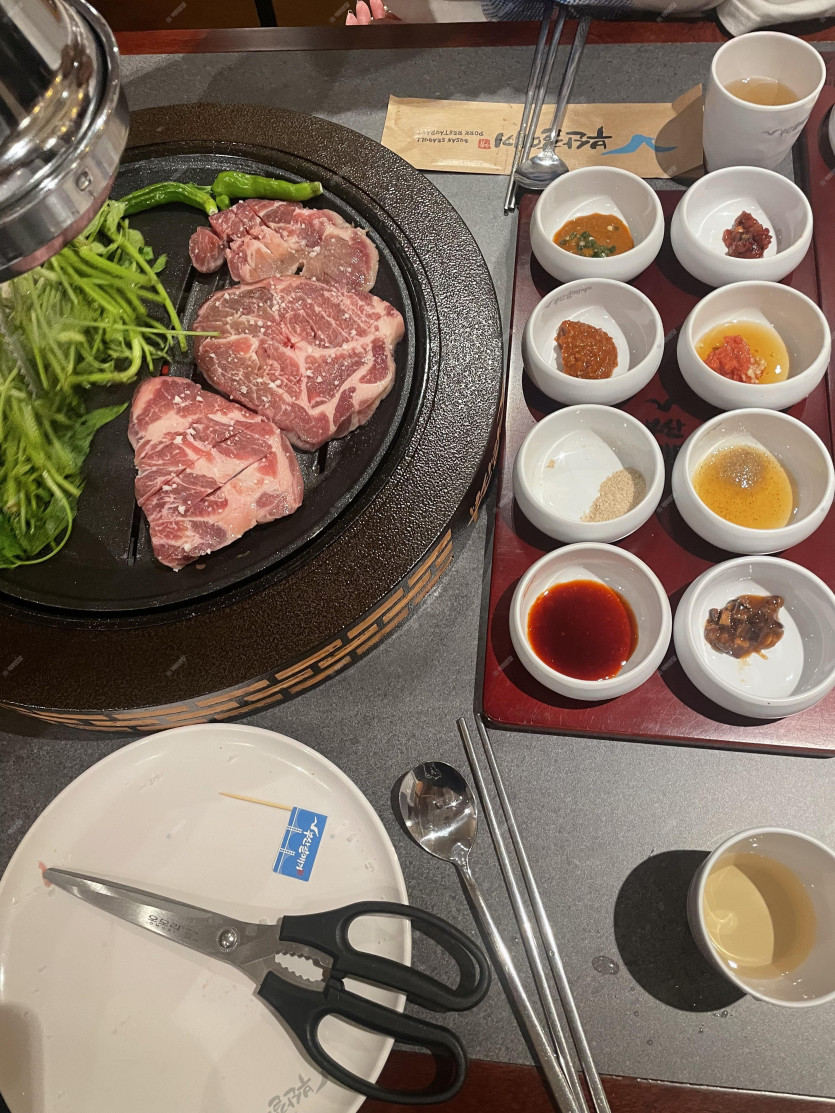 안녕하세요~! 어제 주말이라 저녁에 목살집 가서 고기 야무지게 먹었어요!!