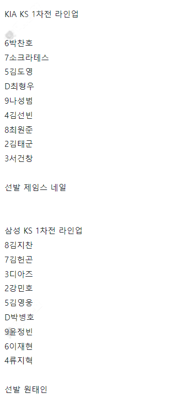 KBO플옵 결승전1차전 선발라인업 작성자 정보 악마 작성 작성일 2024.10.21 17:55 컨텐츠 정보 250 조회 3 댓글 목록 본문 . 0 추천 신고 관련자료 댓글 3 으마기조아님의 댓글 으마기조아 작성일 2024.10.21 19:53 화이팅 신고 화이팅 디카카님의 댓글 디카카 작성일 2024.10.21 20:16 가즈앙~~ 신고 가즈앙~~ 망고마미님의 댓글 망고마미 작성일 2024.10.22 16:35 기즈앙 신고 기즈앙 로그인한 회원만 댓글 등록이 가능합니다. 목록