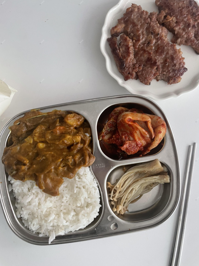 안녕하세요! 오늘 아침 식사는 마누라가 차려준 카레에 각종 반찬들 먹었습니다 ㅋㅋㅋㅋ실수로 밥을 너무 많이 퍼줬지만 다 먹어버렸습니다.