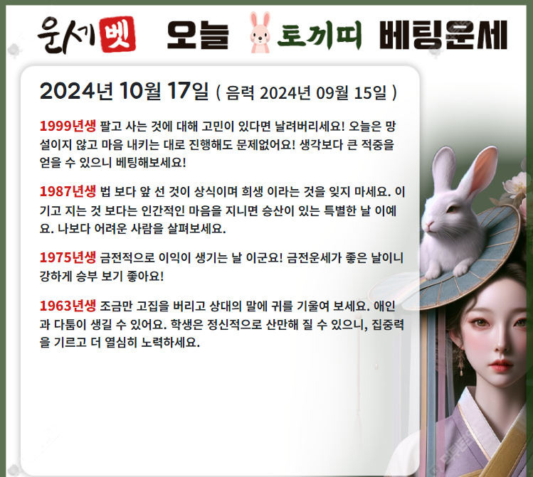 내일 오전 nba 운세보고 갑시다! 작성자 정보 운세맨 작성 작성일 2024.10.16 19:21 컨텐츠 정보 238 조회 2 댓글 목록 본문 농구의 계절 즐겨봅시다!! 0 추천 신고 관련자료 댓글 2 나룻배님의 댓글 나룻배 작성일 2024.10.16 20:24 건승하새요 신고 건승하새요 망고마미님의 댓글 망고마미 작성일 2024.10.16 21:50 화이팅 신고 화이팅 로그인한 회원만 댓글 등록이 가능합니다. 목록