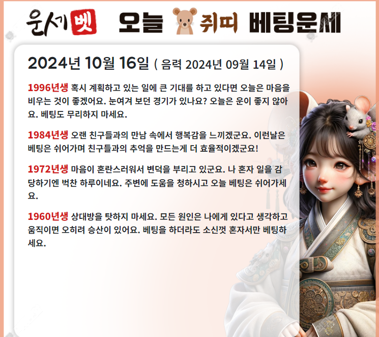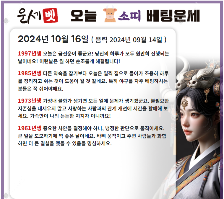 새벽 베팅 달려봅시다!! 작성자 정보 운세맨 작성 작성일 2024.10.15 19:02 컨텐츠 정보 225 조회 3 댓글 목록 본문 운세보고 건승하십쇼~! 0 추천 신고 관련자료 댓글 3 소용돌이님의 댓글 소용돌이 작성일 2024.10.15 19:32 건승기원!입니다 신고 건승기원!입니다 디카카님의 댓글 디카카 작성일 2024.10.15 21:53 건승하세영 신고 건승하세영 망고마미님의 댓글 망고마미 작성일 2024.10.16 04:46 화이팅 신고 화이팅 로그인한 회원만 댓글 등록이 가능합니다. 목록