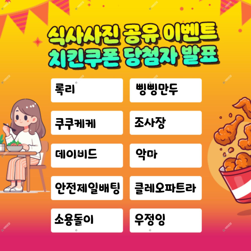 식사사진 공유 이벤트 당첨자 발표입니다