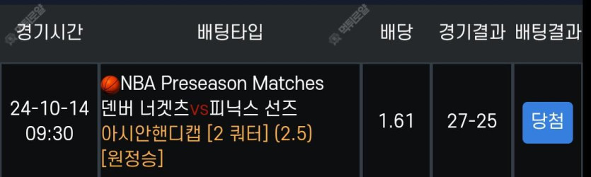 Nba 덴버 피닉스 2쿼 적중! 작성자 정보 소용돌이 작성 작성일 2024.10.14 10:38 컨텐츠 정보 246 조회 7 댓글 목록 본문 다행이 생각대로 됬네요 아슬아슬 적중! 0 추천 신고 관련자료 댓글 7 망고마미님의 댓글 망고마미 작성일 2024.10.14 10:42 화이팅ㅎㅎㅎㅎㅎ 신고 화이팅ㅎㅎㅎㅎㅎ 소용돌이님의 댓글의 댓글 소용돌이 작성일 2024.10.14 10:48 웅 실버해볼까 생각으로 실시간 가고 있어 ㅋㅋ 신고 웅 실버해볼까 생각으로 실시간 가고 있어 ㅋㅋ 날두궁님의 댓글 날두궁 작성일 2024.10.14 13:38 축하드립니다!!! 신고 축하드립니다!!! 소용돌이님의 댓글의 댓글 소용돌이 작성일 2024.10.14 20:38 감사합니다ㅎ 신고 감사합니다ㅎ 디카카님의 댓글 디카카 작성일 2024.10.14 20:32 추카드려영 신고 추카드려영 소용돌이님의 댓글의 댓글 소용돌이 작성일 2024.10.14 20:38 감사합니다~~ 신고 감사합니다~~ 디카카님의 댓글의 댓글 디카카 작성일 2024.10.14 20:48 넵!! 신고 넵!! 로그인한 회원만 댓글 등록이 가능합니다. 목록