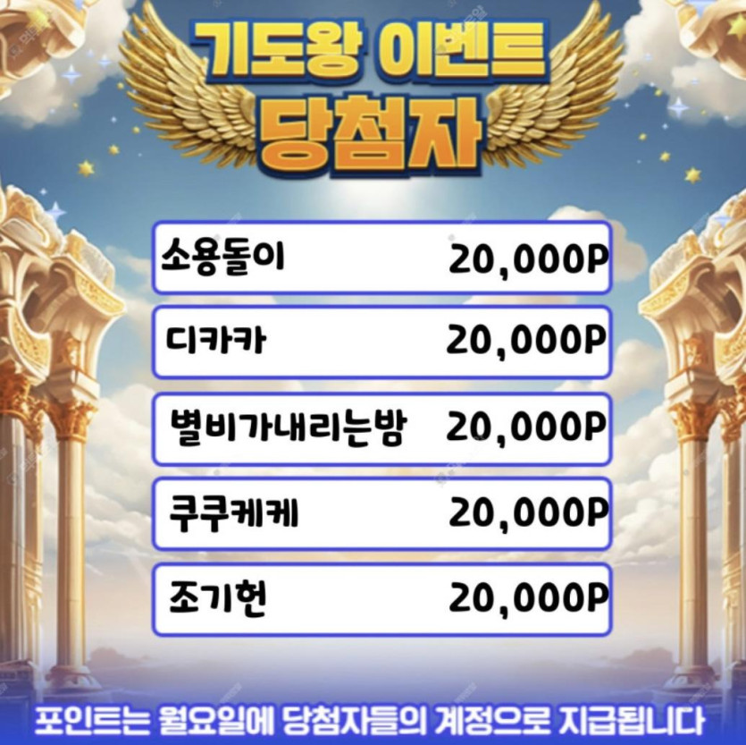 오웃 이것도 걸리다니! 작성자 정보 쿠쿠케케 작성 작성일 2024.10.14 18:30 컨텐츠 정보 233 조회 8 댓글 목록 본문 열심히 기도할게요 아멘! 0 추천 신고 관련자료 댓글 8 디카카님의 댓글 디카카 작성일 2024.10.14 20:36 추카드려영 신고 추카드려영 쿠쿠케케님의 댓글의 댓글 쿠쿠케케 작성일 2024.10.14 21:15 감사해영ㅎㅎ 신고 감사해영ㅎㅎ 소용돌이님의 댓글 소용돌이 작성일 2024.10.14 20:40 축하드립니다 신고 축하드립니다 쿠쿠케케님의 댓글의 댓글 쿠쿠케케 작성일 2024.10.14 21:16 브로 감사함돠! 신고 브로 감사함돠! 망고마미님의 댓글 망고마미 작성일 2024.10.14 23:22 축하그립니당ㅎㅎㅎ 신고 축하그립니당ㅎㅎㅎ 쿠쿠케케님의 댓글의 댓글 쿠쿠케케 작성일 2024.10.15 17:12 감사합니당ㅎㅎ 신고 감사합니당ㅎㅎ 아킬라님의 댓글 아킬라 작성일 2024.10.30 17:06 축하드립니다 저도 기운받고 당첨기원ㅎㅎ 신고 축하드립니다 저도 기운받고 당첨기원ㅎㅎ 쿠쿠케케님의 댓글의 댓글 쿠쿠케케 작성일 2024.10.31 19:42 빠샤!!!!! 신고 빠샤!!!!! 로그인한 회원만 댓글 등록이 가능합니다. 목록