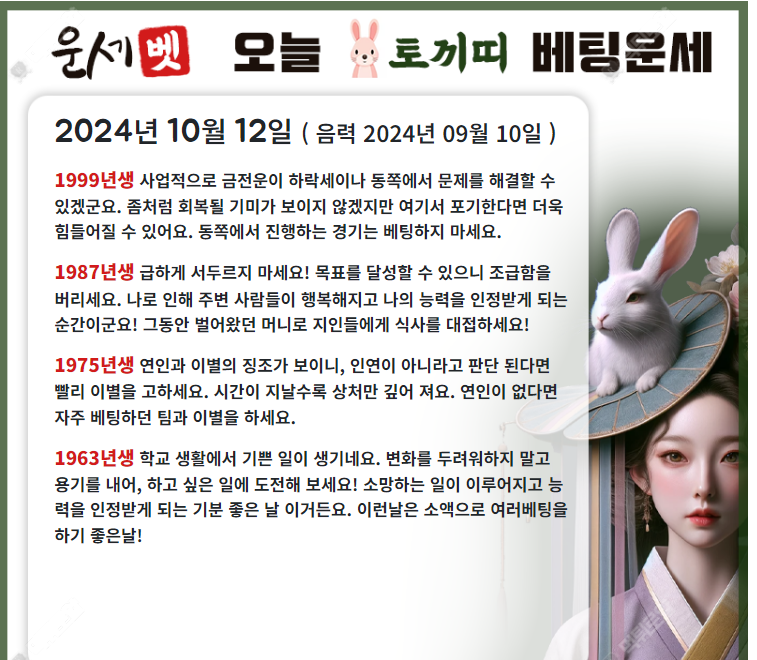 불금 새벽베팅 운세보고 건승가자!! 작성자 정보 운세맨 작성 작성일 2024.10.11 21:52 컨텐츠 정보 223 조회 2 댓글 목록 본문 다들 꿀주말 되십시오!!! 0 추천 신고 관련자료 댓글 2 망고마미님의 댓글 망고마미 작성일 2024.10.11 22:05 건승ㅎㅎㅎㅎ 신고 건승ㅎㅎㅎㅎ 나룻배님의 댓글 나룻배 작성일 2024.10.12 09:23 건승하새요 신고 건승하새요 로그인한 회원만 댓글 등록이 가능합니다. 목록