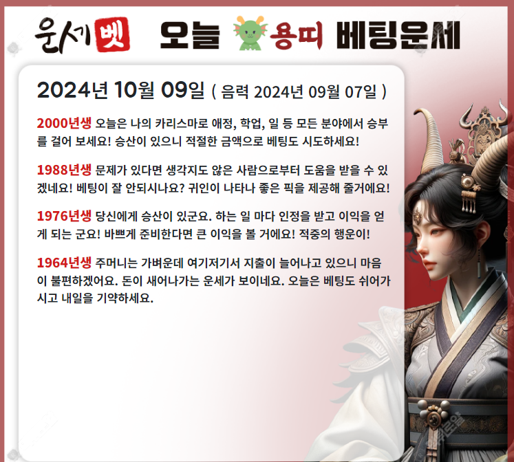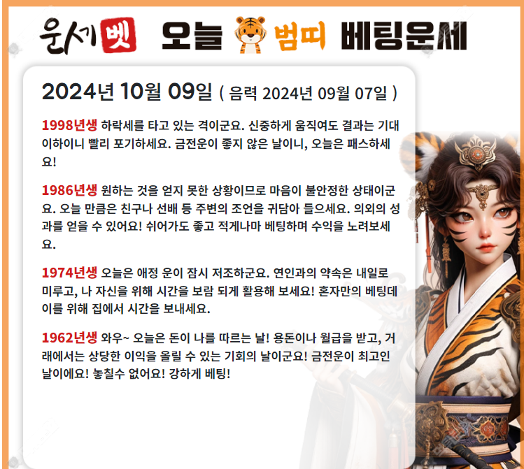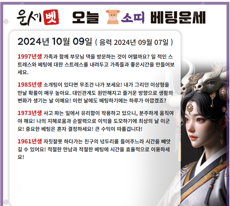 공휴일도 운세보고 화이팅~! 작성자 정보 운세맨 작성 작성일 2024.10.08 21:42 컨텐츠 정보 300 조회 3 댓글 목록 본문 믿고가면 손해는 안봅니다! 0 추천 신고 관련자료 댓글 3 소용돌이님의 댓글 소용돌이 작성일 2024.10.08 21:44 말띠는 없나요 ㅠㅠ ㅎㅎ 신고 말띠는 없나요 ㅠㅠ ㅎㅎ 별비가내리는밤님의 댓글 별비가내리는밤 작성일 2024.10.08 22:04 잔나비(원숭이)는 없네요 어디갔지?? 어디갔을까요? 신고 잔나비(원숭이)는 없네요 어디갔지?? 어디갔을까요?{emo:onion-019.gif:50} 망고마미님의 댓글 망고마미 작성일 2024.10.08 23:05 화이팅 신고 화이팅 로그인한 회원만 댓글 등록이 가능합니다. 목록