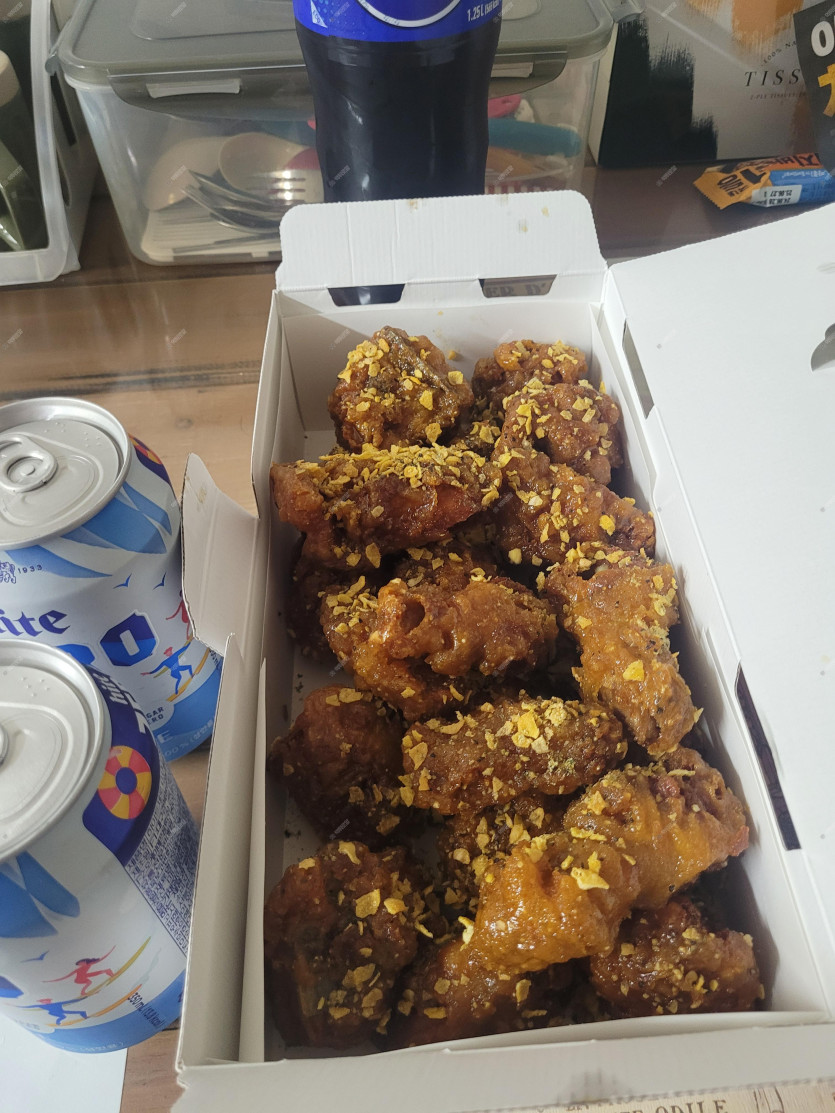 오늘은 반반대신 새로운 신메뉴 옥수수치킨으로 교환했습니다 허니에 옥수수뿌려주네요~!! 회원닝들도 저녁잘 챙겨드시구~ 주말마무리 잘하시길 바랍니다!