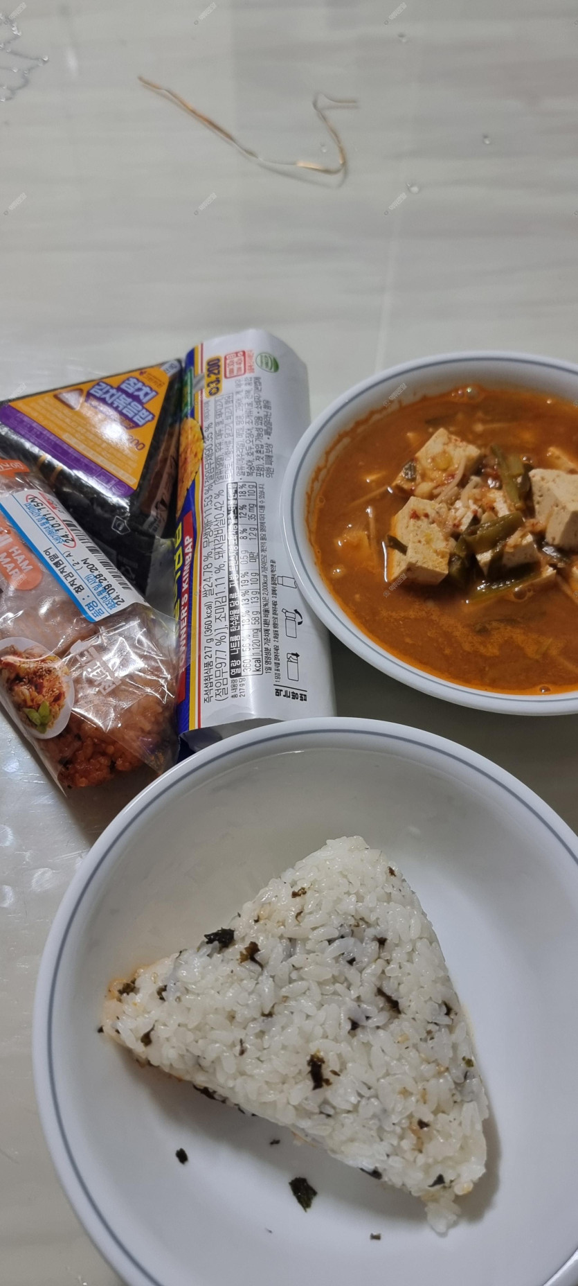 편의점 삼각김밥 김밥 된장국
