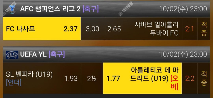 11시 축구 아챔과 유에파축구 2경기 적중!