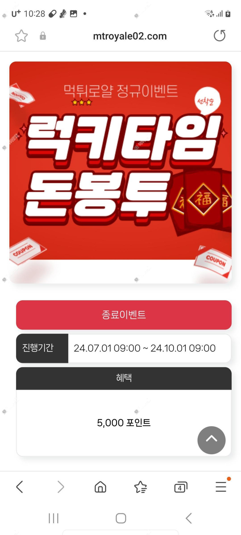 소용돌이님의 댓글의 댓글 소용돌이 작성일 2024.10.01 16:24 50만퀘스트는 12월달까지이구 타임어택은 오늘까지로 되어있긴 한데 식사이벤트도 연장 됬는데 이건 잘모르겠네요 ㅎㅎ 신고 50만퀘스트는 12월달까지이구 타임어택은 오늘까지로 되어있긴 한데 식사이벤트도 연장 됬는데 이건 잘모르겠네요 ㅎㅎ