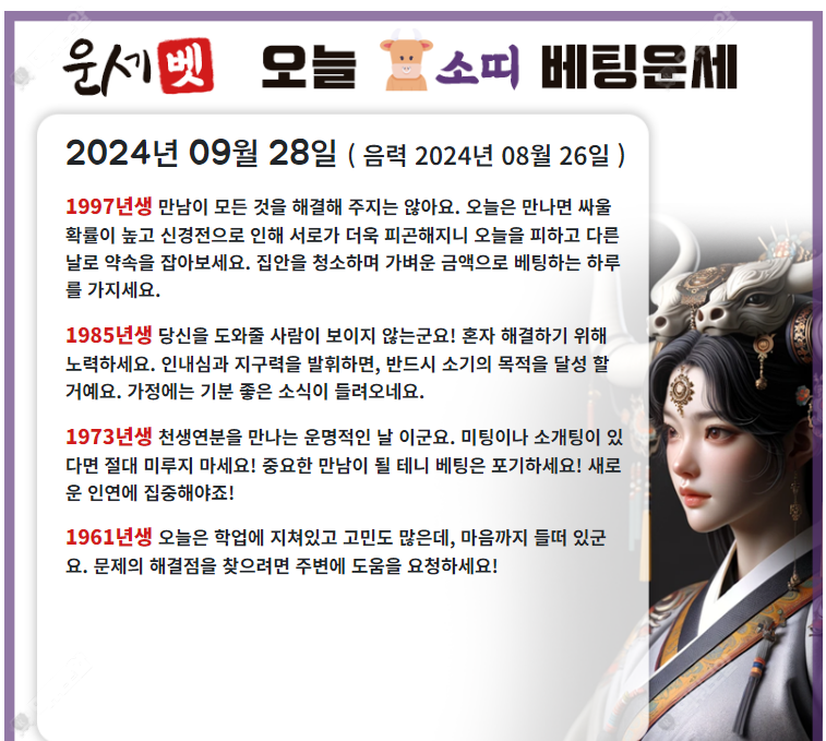 좋은주말 건승하십쇼! 작성자 정보 운세맨 작성 작성일 2024.09.28 18:30 컨텐츠 정보 222 조회 6 댓글 목록 본문 이번주말도 건승갑시다! 0 추천 신고 관련자료 댓글 6 쿠쿠케케님의 댓글 쿠쿠케케 작성일 2024.09.28 18:37 화이팅입니다! 신고 화이팅입니다! 세베잉님의 댓글 세베잉 작성일 2024.09.28 18:48 건숭하세용 신고 건숭하세용 바카라의신님의 댓글 바카라의신 작성일 2024.09.28 19:24 건승하세요 신고 건승하세요 쿠쿠케케님의 댓글 쿠쿠케케 작성일 2024.09.28 21:49 건승하십쇼! 신고 건승하십쇼! 망고마미님의 댓글 망고마미 작성일 2024.09.28 23:17 건승하세용 신고 건승하세용 푸라닭님의 댓글 푸라닭 작성일 2024.09.30 11:37 건승하세요 신고 건승하세요 로그인한 회원만 댓글 등록이 가능합니다. 목록