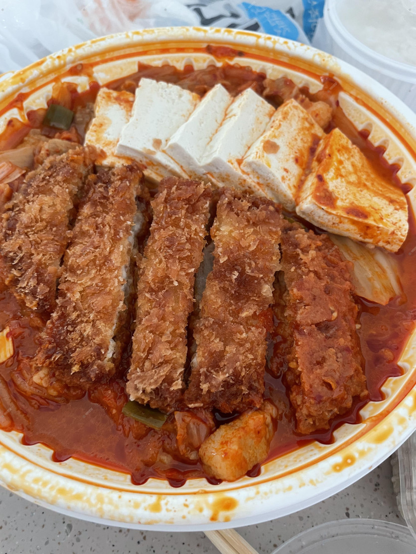 김치찜에 토핑으로 돈까스추가
