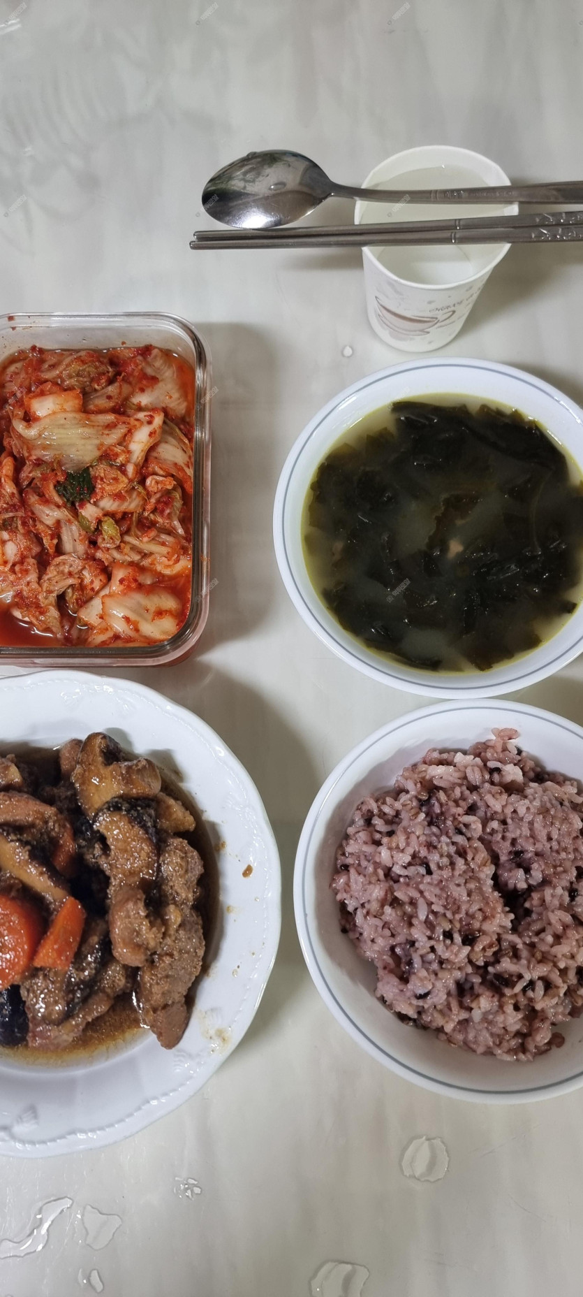 갈비찜 김치 미역국 현미밥