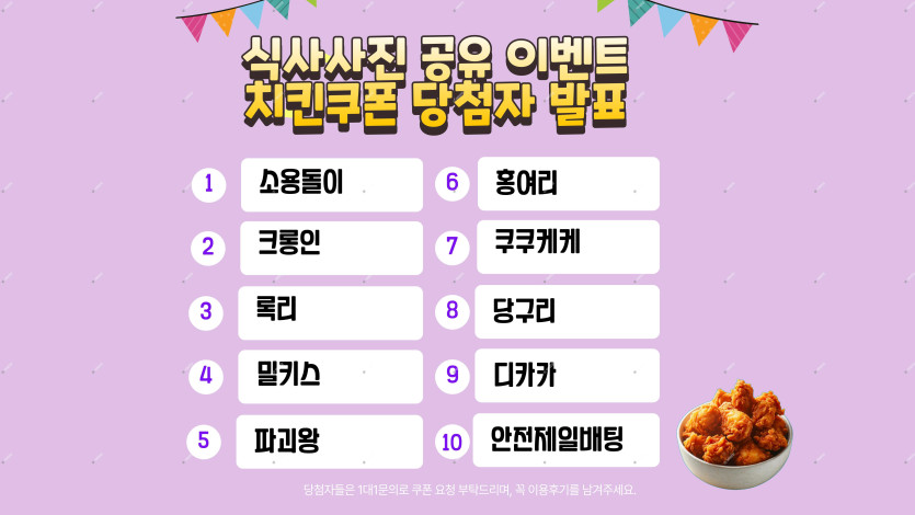 식사사진 공유 이벤트 당첨자 발표입니다