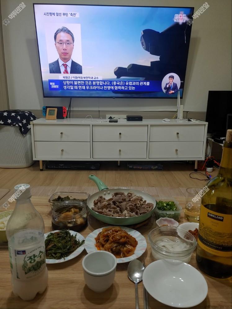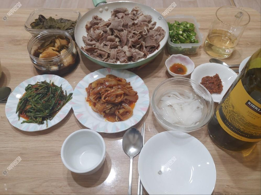 대패삼결살+김치구이+와인+장수막걸리=😋