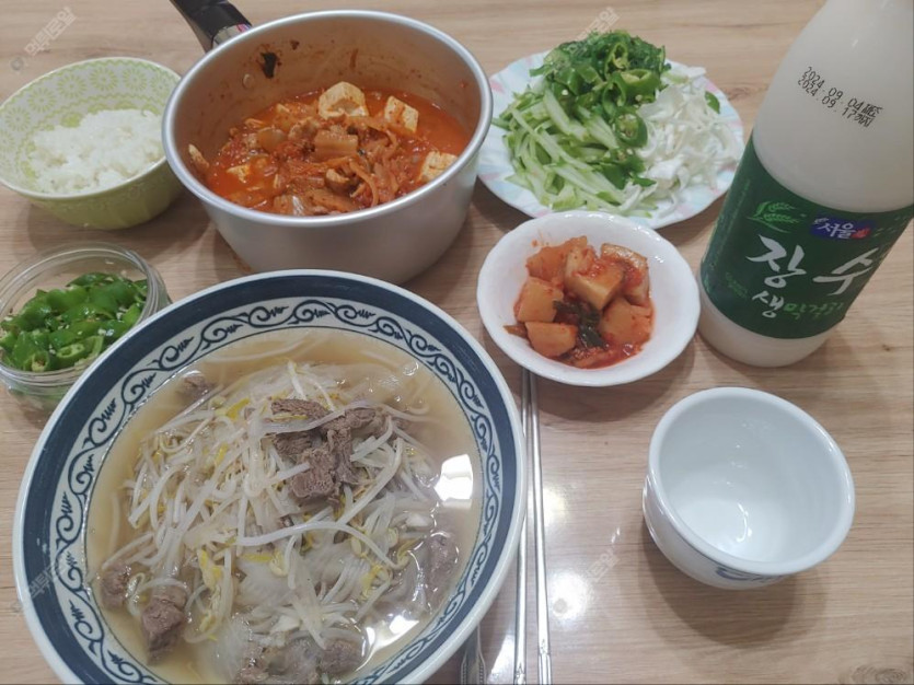 쌀국수+김치찌게+해초샐러드+장수막걸리