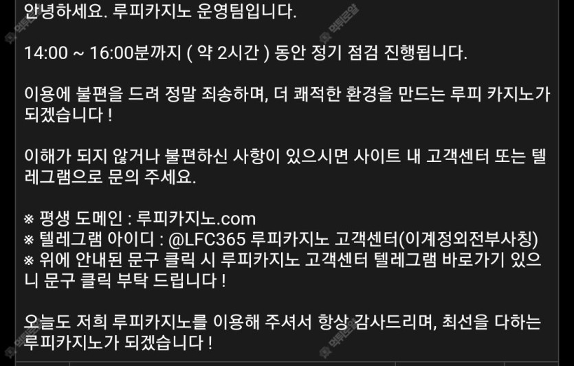 루피 14시~16시 사이트점검 작성자 정보 크롱인 작성 작성일 2024.09.02 11:36 컨텐츠 정보 274 조회 7 댓글 목록 본문 ~점검 있데요 포교 늦어질수도 있겠네요~! 다들건승하세요 0 추천 신고 관련자료 댓글 7 망고마미님의 댓글 망고마미 작성일 2024.09.02 11:39 이런거 알려주시니 ㅎㅎ 이용하시는분들께 도움 될것같아요 ㅎㅎㅎㅎ 감사합니다 ~~~ 신고 이런거 알려주시니 ㅎㅎ 이용하시는분들께 도움 될것같아요 ㅎㅎㅎㅎ 감사합니다 ~~~ 크롱인님의 댓글의 댓글 크롱인 작성일 2024.09.02 12:11 헤헿 신고 {emo:onion-084.gif:50}헤헿 망고마미님의 댓글의 댓글 망고마미 작성일 2024.09.02 12:47 신고 {emo:onion-059.gif:50} 크롱인님의 댓글의 댓글 크롱인 작성일 2024.09.02 12:57 점심 먹었어요?? 전 방금 먹고옴 신고 점심 먹었어요?? 전 방금 먹고옴{emo:onion-061.gif:50} 망고마미님의 댓글의 댓글 망고마미 작성일 2024.09.02 13:00 네.. 먹었어요 신고 네.. 먹었어요 크롱인님의 댓글의 댓글 크롱인 작성일 2024.09.02 13:02 오늘도 화이팅하시라구욧 신고 {emo:onion-021.gif:50}오늘도 화이팅하시라구욧 망고마미님의 댓글의 댓글 망고마미 작성일 2024.09.02 13:03 크롱님두용..ㅎㅎㅎㅎ 신고 크롱님두용..ㅎㅎㅎㅎ 로그인한 회원만 댓글 등록이 가능합니다. 목록