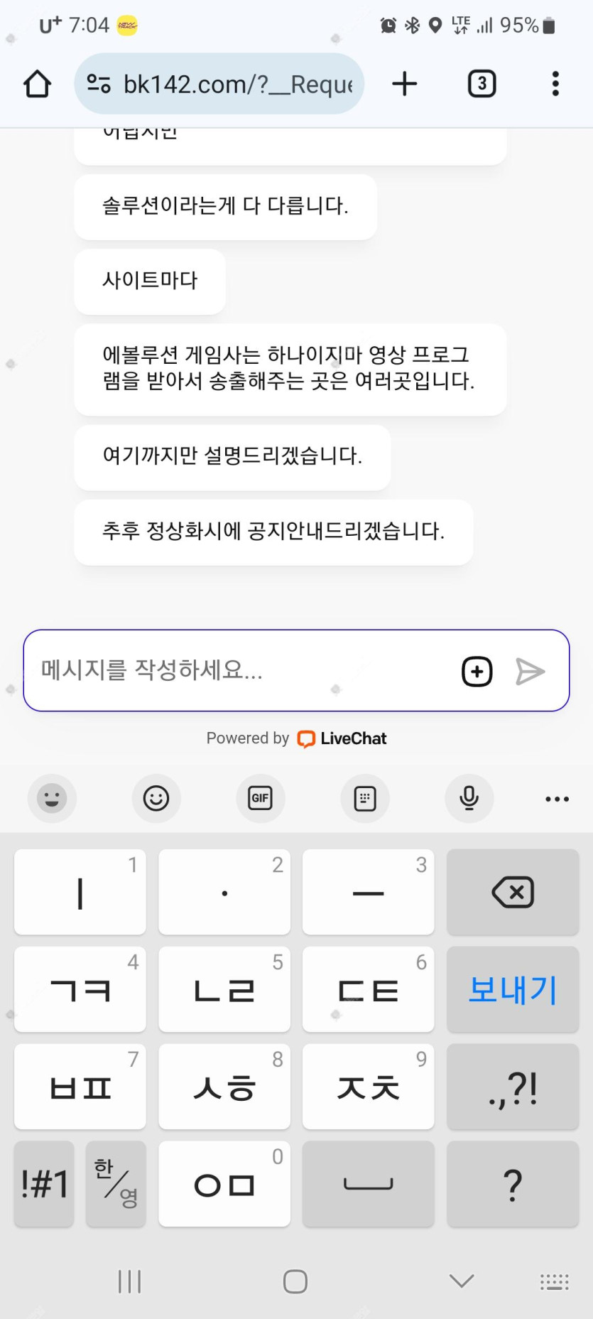 형님들 에볼루션이 사이트마다 어디는게임되고 어디는 점검이 맞습니까? 문의넣으니 영상송출이 다르다는데 이거 사기아닙니까?
