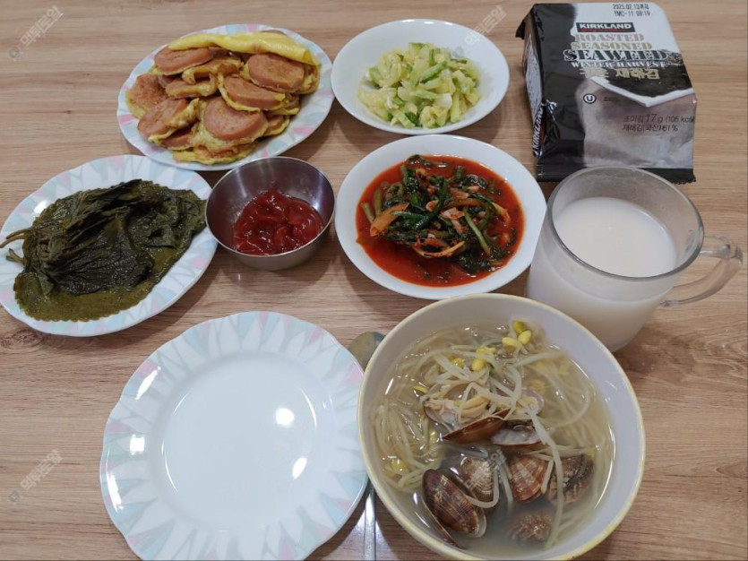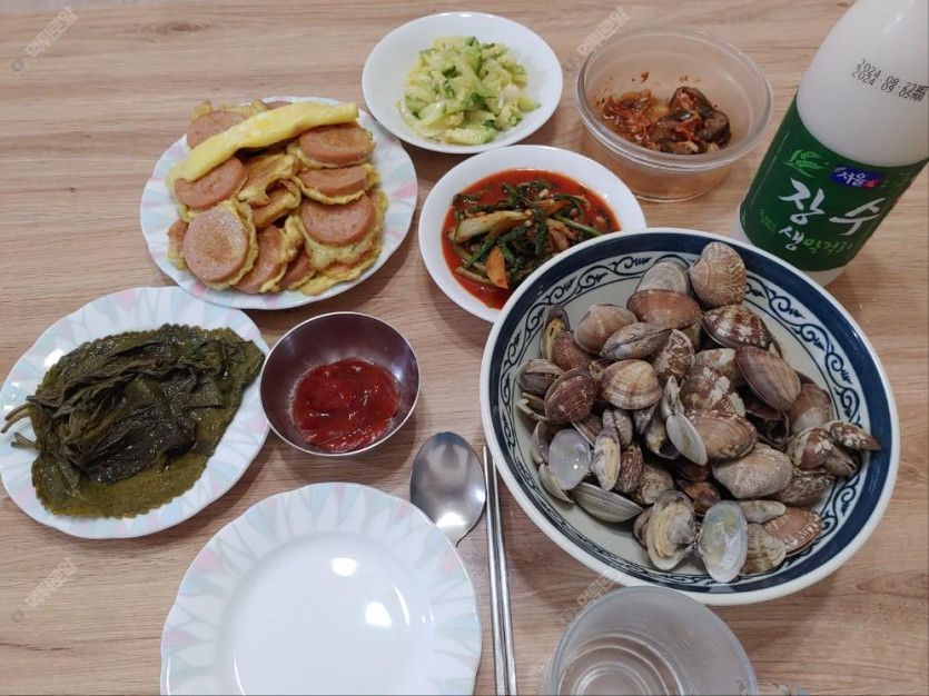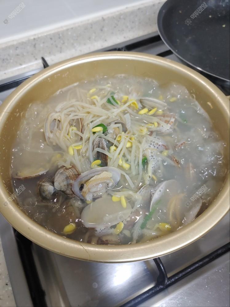 직접 캔 바지락으로 끊인 콩나물국